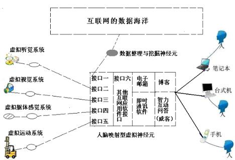 在相關(guān)論文中,我們也繪制了更為詳細的互聯(lián)網(wǎng)映射型虛擬神經(jīng)元,它是以目前互聯(lián)網(wǎng)個人空間應用為基礎,擴充并預言了成熟后的互聯(lián)網(wǎng)神經(jīng)元結(jié)構(gòu)。