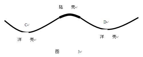 冰輒理論認(rèn)為:大洋地殼中心沉降的過程中,不僅表現(xiàn)為對(duì)于板塊交界地帶的撕裂同時(shí)洋殼的中心部位C、D區(qū)域也會(huì)出現(xiàn)倒V字形的斷裂如圖3所示,當(dāng)然在于大洋的中心初期形成地殼斷裂的短時(shí)期內(nèi)火山就會(huì)迅猛爆發(fā),所以我們所能見到的只能是大洋的中脊,實(shí)質(zhì)上大洋地殼的底層是一個(gè)倒V字形的大斷裂,這也是大洋中脊火山頻繁爆發(fā)的主要原因。